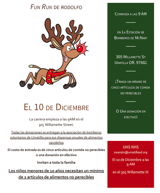 ¡Diviértete con nuestro Baile Familiar de Otoño organizado por el Club de Padres de Umatilla! Se pueden encontrar más detalles en el folleto adjunto.