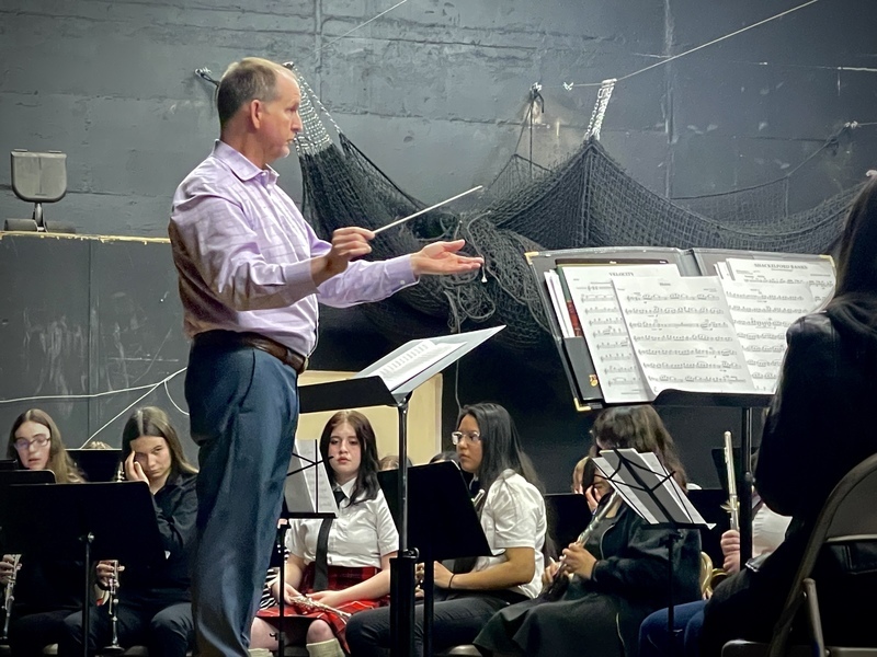 - Guest conductor Dr. Stephen Friel, from Eastern Washington University, leads the Tri-County Band on April 5, 2023.